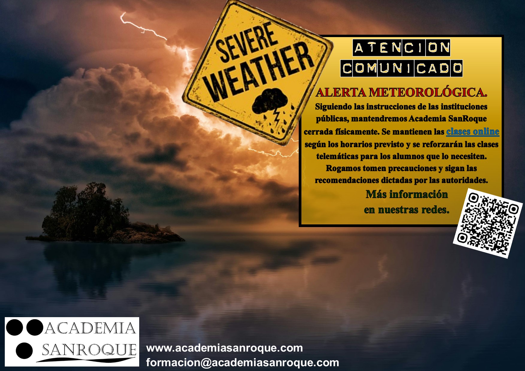 Solo se impartirán clases telemáticas a traves de nuestra página web www.academiasanroque.com.